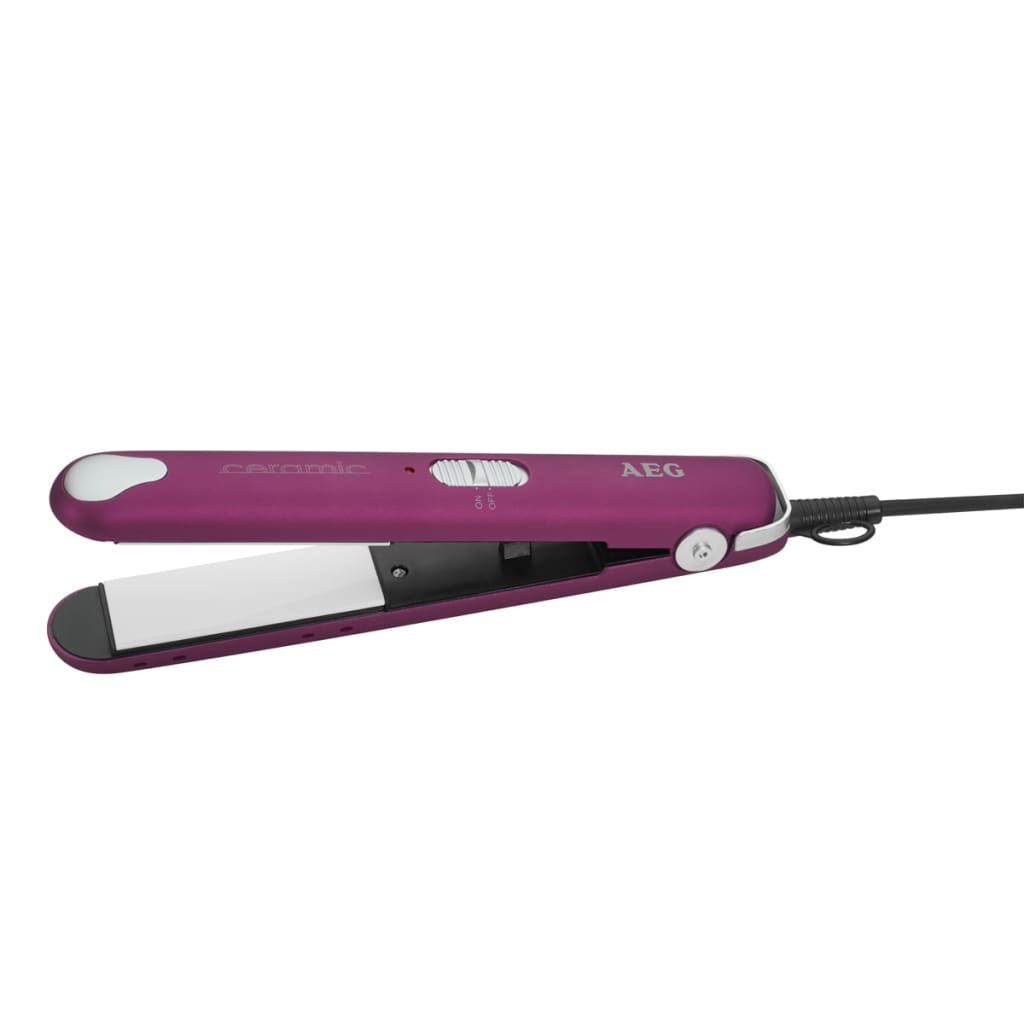 This AEG hair straightener HC 5680 is a very handy tool for straightening and styling your hair with professional results. The hair straightener has full ceramic plates for an even and gentle heat distribution. It has a short heating period and straightens hair without problems thanks to the prolonged, constant temperature. Operation is very simple as you just clamp a strand of hair between the plates and move the flat iron smoothly in a downward direction. This compact AEG hair straightener is easy to take along in your travel bag or suitcase.