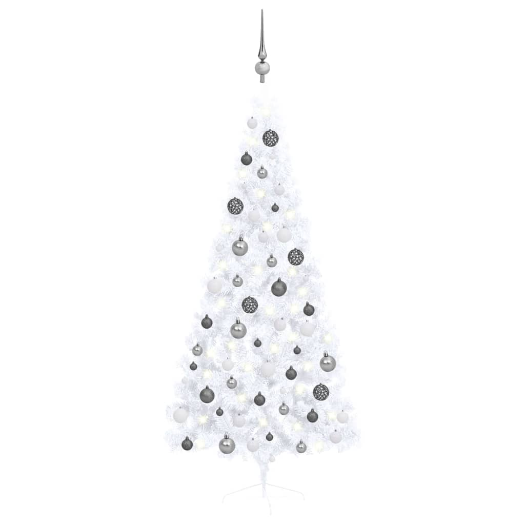 vidaXL Artificial Half Pre-lit Christmas Tree with Ball Set White 180 cm